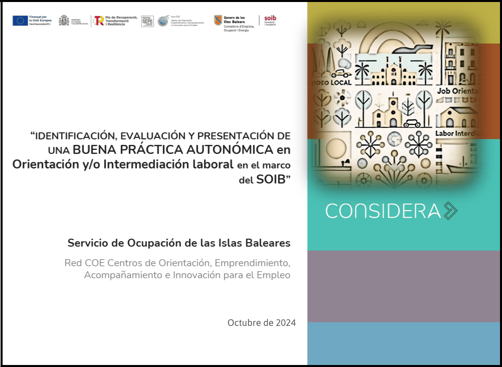 Amb aquesta iniciativa es va voler identificar, avaluar i presentar una bona pràctica autonòmica en orientació i/o intermediació laboral en el marc del Servei d’Ocupació de les Illes Balears (SOIB).