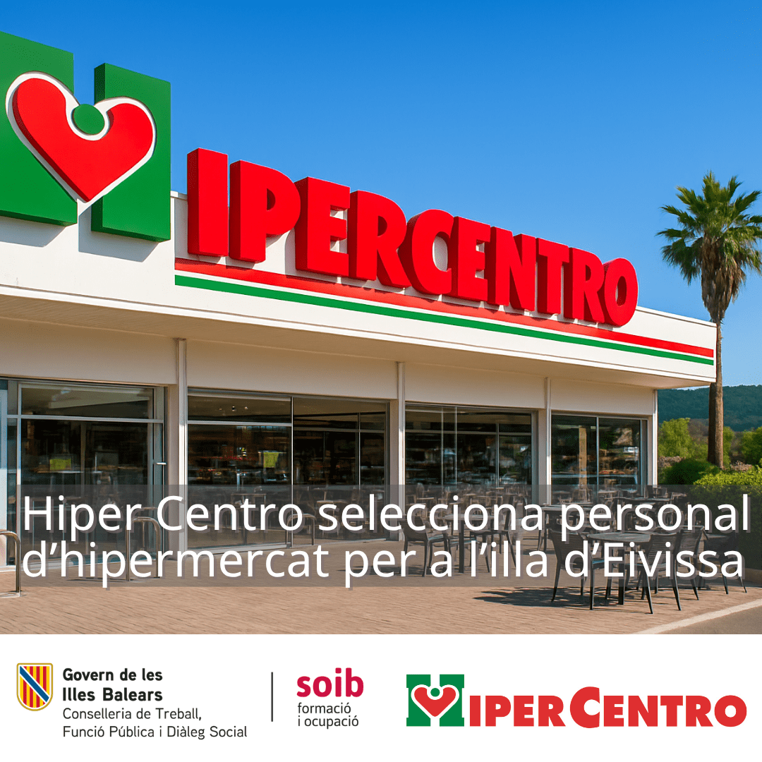L’empresa Hiper Centro ofereix 25 llocs de feina per al perfil de personal d’hipermercat per al seu centre d’Eivissa.